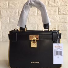 迈克高仕女包 MK新款金边Tatiana风琴包 黑色进口纳帕牛皮手提单肩包包23CM
