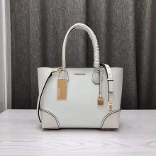 迈克科尔斯女包 MK2019新款荔枝纹牛皮包包手提单肩购物袋31CM 白色