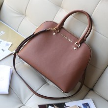 广州MK包包批发 Michael Kors 啡色进口十字纹牛皮中号贝壳包 手提斜挎女包33cm