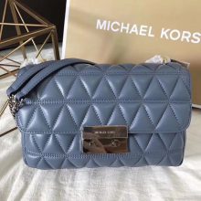 厂家直销 MK迈克尔高仕原版三角纹羊皮包链条单肩女包大号27CM 蓝色