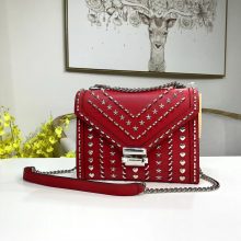 最近很火的MK家铆钉包,官网同步selma系列小号单肩斜挎女包,材质:进口十字压纹牛皮,结构:拉链封口,一个拉链内袋,1个插袋,一个钥匙扣。