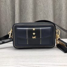 MK包包官网 MK拼色牛皮五角星装饰相机包流苏单肩斜挎女包19CM 深蓝色