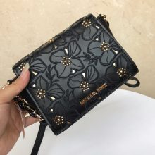 MK2019新款包包 迈克高仕原单十字纹牛皮迷你刺绣花朵款单肩斜挎包18CM 黑色