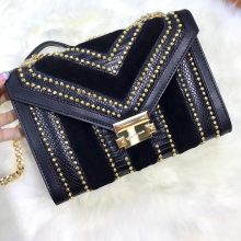 MK包包价格 迈克科尔斯黑色拼皮铆钉Whitney链条单肩斜挎包包24cm