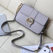 MK新款 十字纹牛皮 真皮拼色蝙蝠包中号原版皮 宝蓝拼白色