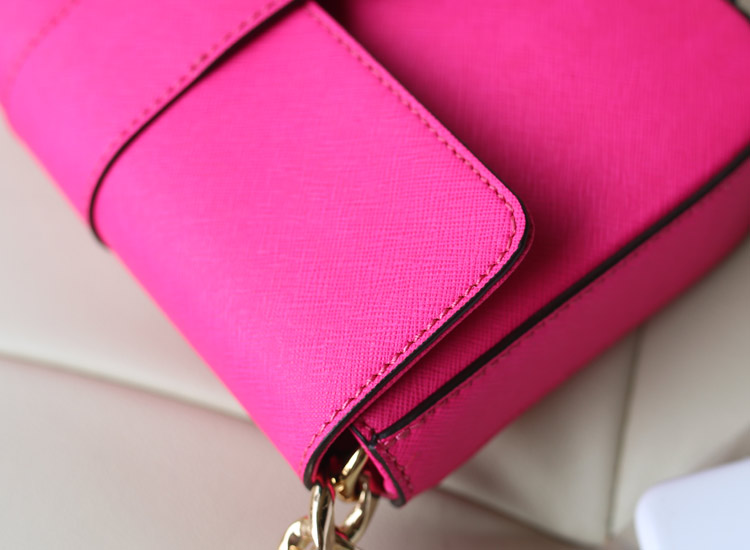 厂家直销 MK新款 原版十字纹牛皮单肩 盖头 斜挎包 荧光玫红
