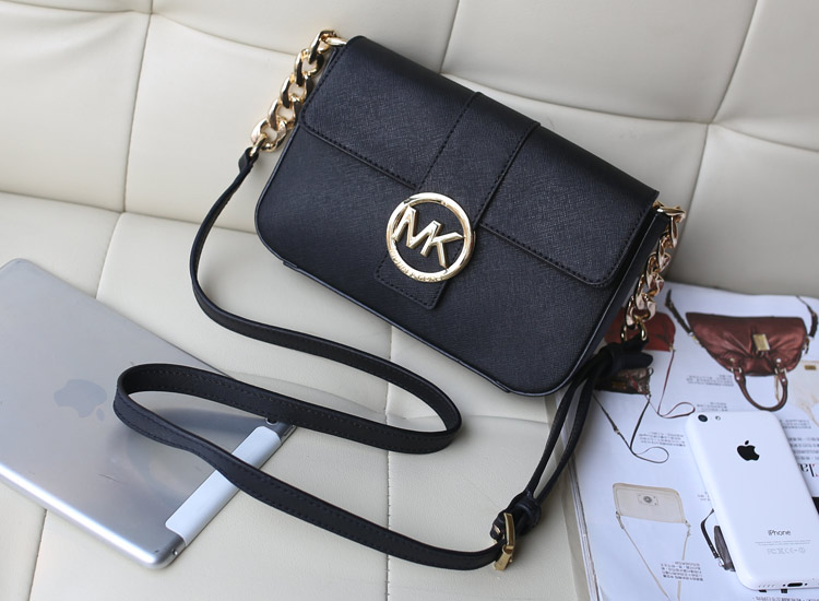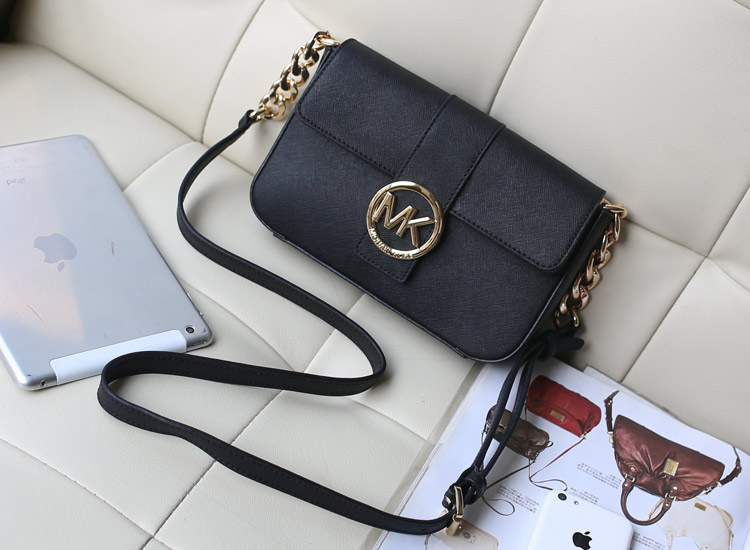 广州白云皮具城 MK迈克高仕新款羊皮链条翻盖小包斜挎包19CM 黑色