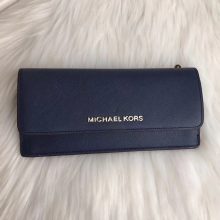 MK钱包新款 迈克科尔斯原单十字纹牛皮对折钱夹手包20cm 深蓝色