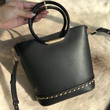广州白云皮具城 MK迈克高仕原单纳帕牛皮铆钉水桶包手提单肩女包 黑色