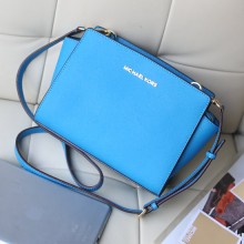 Michael Kors MK 2015秋冬专柜新款原版十字纹牛皮中号贝壳包手提斜挎女包宝蓝色