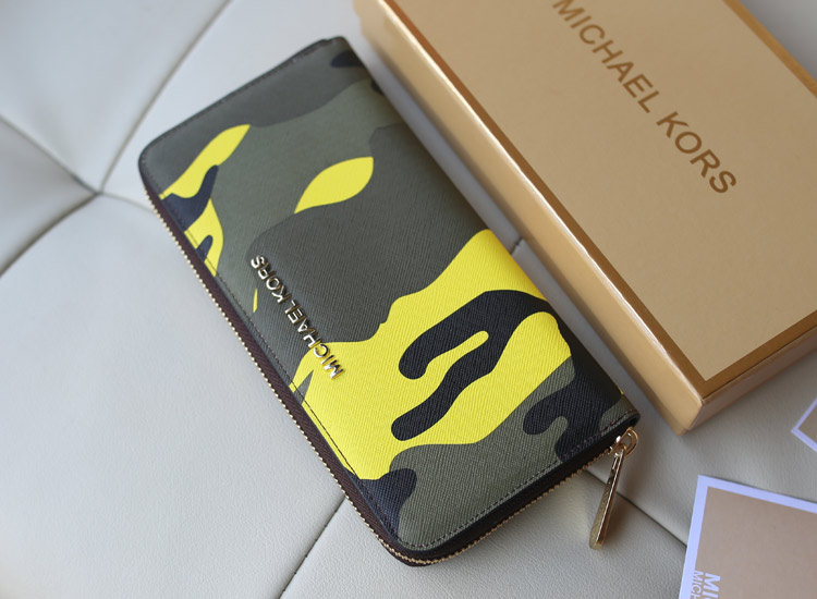 MK2014专柜同步新款钱包 原版牛皮迷彩系列钱包拉链手包 黄色