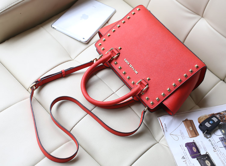 名牌包包MK Michael Kors 铆钉包笑脸包红色原版十字纹牛皮斜挎包女包