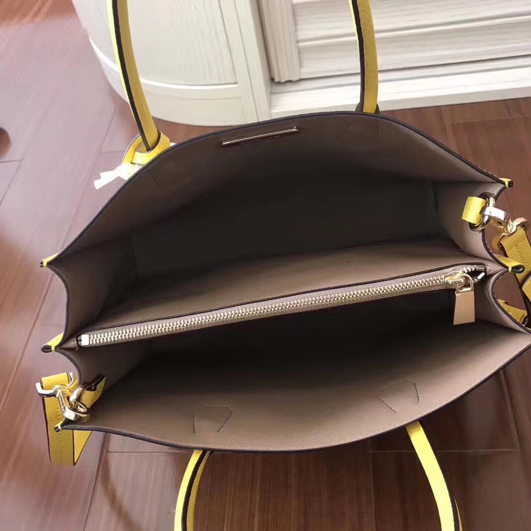 MK原单好货,杨幂走秀同款mercer新款锁头手提挎包 ,最近专柜疯抢。美国已经断货,现货少量,材质荔枝纹牛皮,大号尺寸32-14-25!中号尺寸26-22-12!小号尺寸:22-19-11,颜色:黄色