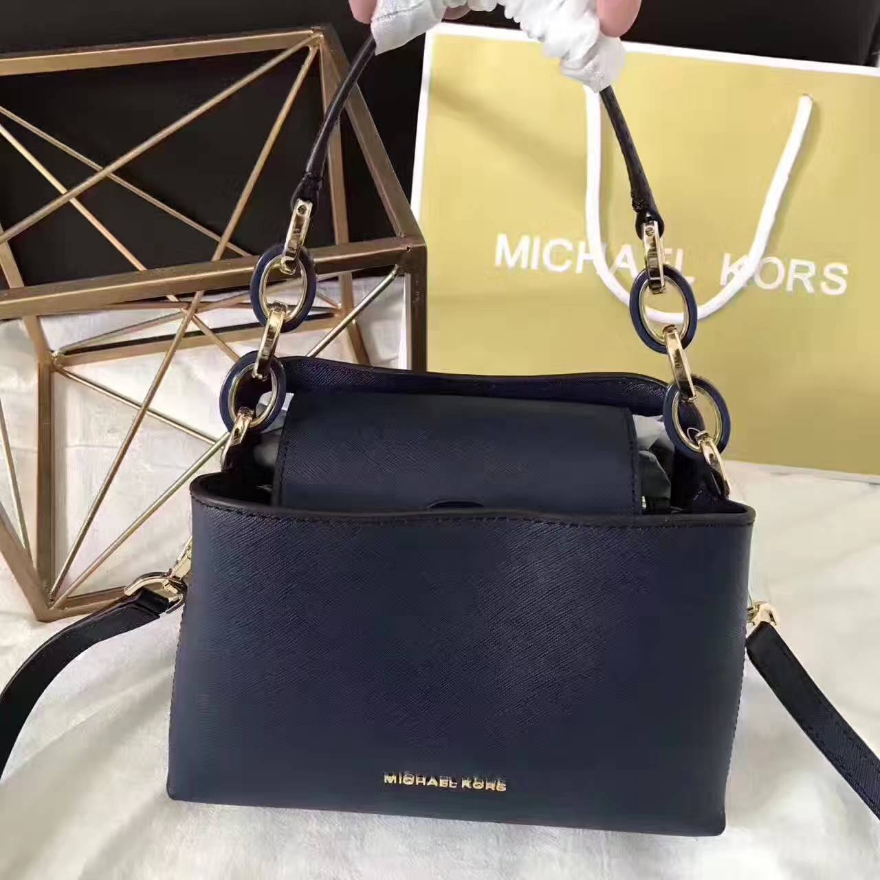 迈克高仕MK新款包包 2017年新款牛皮玉石包单肩斜挎女包 深蓝色
