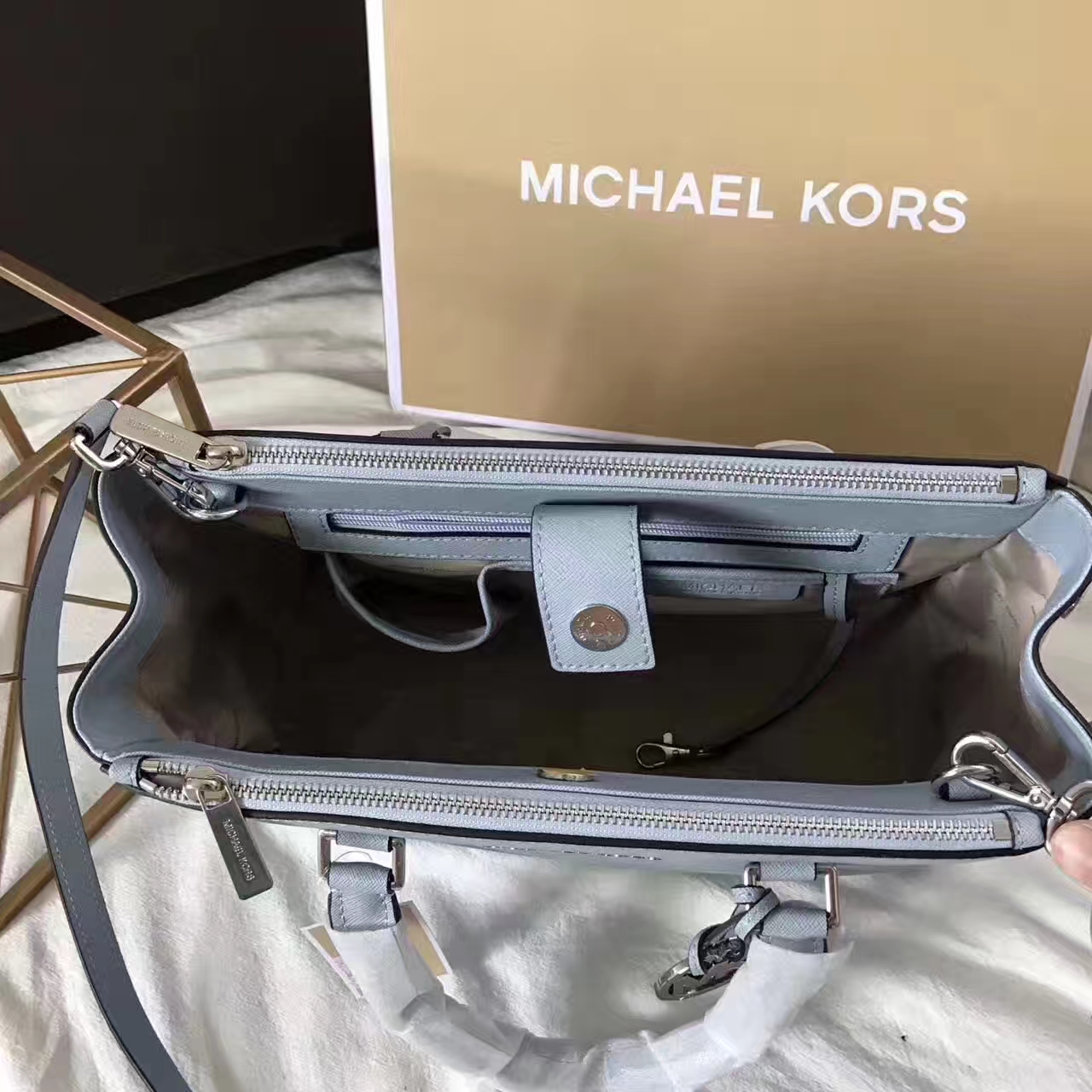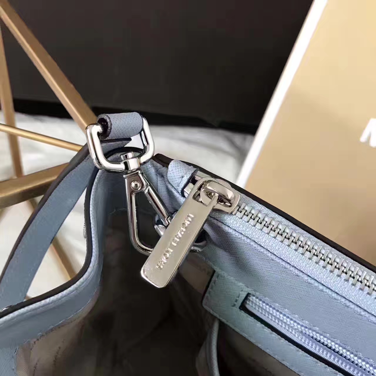 MK包包官网 迈克高仕十字纹牛皮原单双拉链杀手包中号32cm 浅蓝色