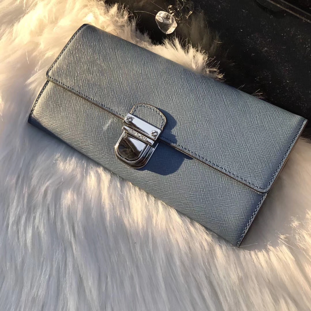 MK锁头钱包最新款出货,原单顶级打造,尺寸20-10-1.5cm,材质:十字纹牛皮,颜色:车菊蓝色