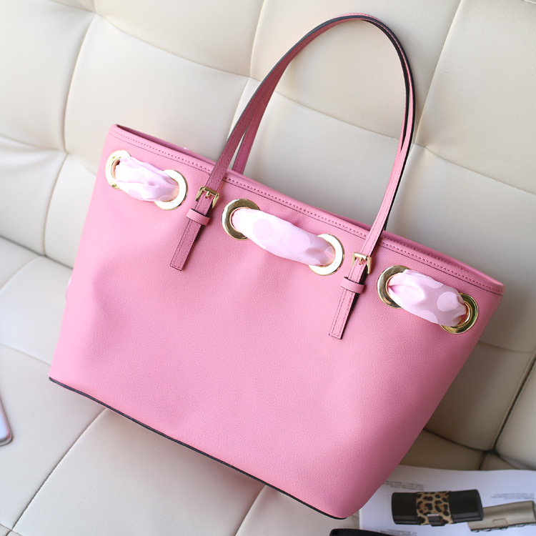 热销女包MK丝巾包 Michael Kors 粉色原版牛皮蝴蝶结真丝巾女士单肩手提包购物袋