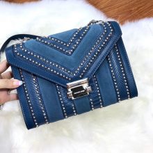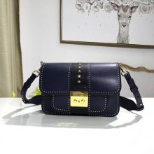 MK包包官网 迈克科尔斯深蓝色原单牛皮2018秋冬新款铆钉斜挎女包23cm