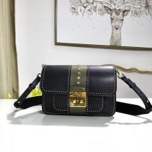 MK Sloan Editor 迈克高仕黑色原单牛皮铆钉单肩斜挎女包23CM.
