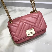 MK2018新款女包 迈克科尔斯粉色原单小羊皮三角纹斜挎小方包23cm