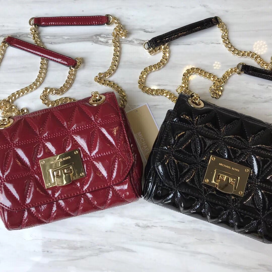 迈克科尔斯新款包包 MK2018新款女包 樱桃红原单漆皮链条单肩包20CM