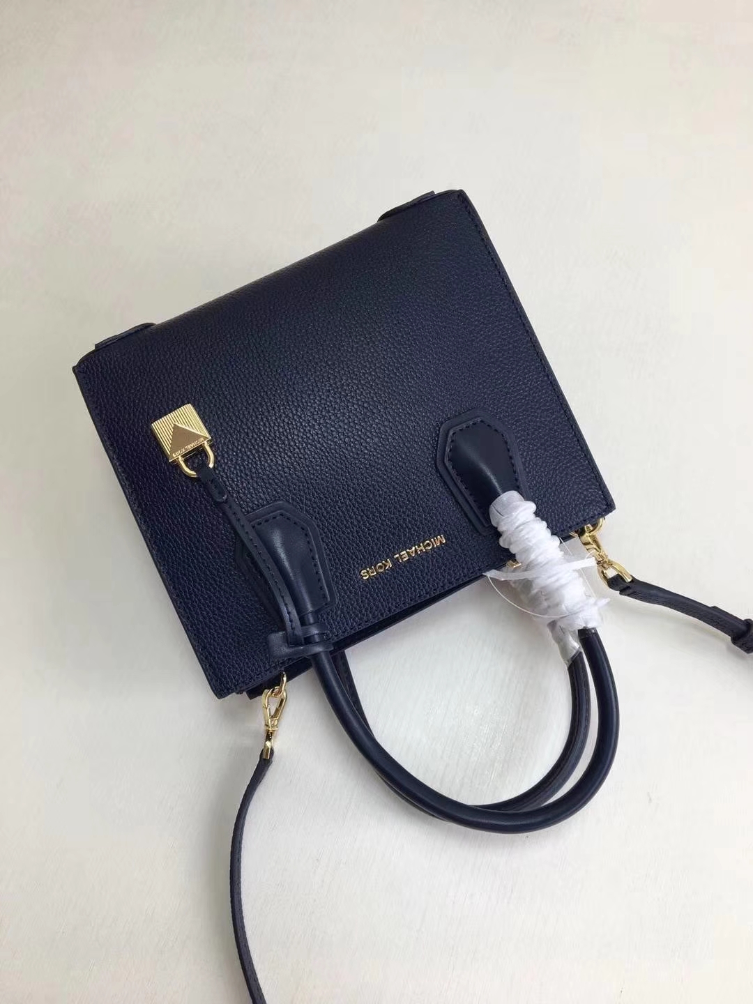 MK新款风琴包 迈克高仕深蓝色进口牛皮手提女包单肩斜挎包三个尺寸