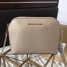 迈克科尔斯包包 MK原单十字纹牛皮小号贝壳包链条斜挎包23cm 香槟金色