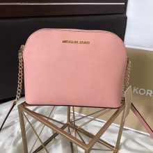 MK包包批发 迈克高仕虾粉色原单十字纹牛皮小号贝壳包链条斜挎包23cm