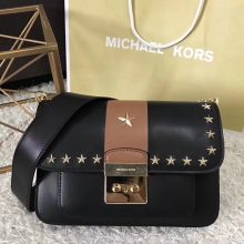MK新款女包 迈克科尔斯黑色配棕色纳帕牛皮五角星铆钉单肩斜挎女包23cm