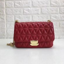 迈克高仕新款女包 MK Sloan新款羊皮菱格单肩斜挎包26cm 大红色