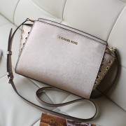 michael kors MK原版十字纹牛皮侧孔铆钉鸡眼包小号土豪金