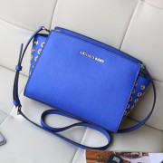 michael kors MK原版十字纹牛皮侧孔铆钉鸡眼包小号电光蓝