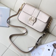 高档欧美女包 MK盖头单肩斜挎包 金色 原版牛皮十字纹