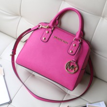 欧美品牌女包 MK进口原版十字纹牛皮 玫红色 中号贝壳枕头包单肩包