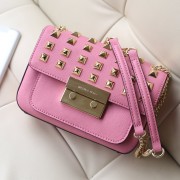 michael kors MK女包 镶钻铆钉包玫红十字纹牛皮单肩包斜挎包