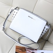 michael kors MK牛皮女包 侧孔圈圈铆钉包蝙蝠包 斜挎单肩包白色