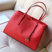 早春新款 michael kors MK原版十字纹牛皮女士单肩包购物袋红色