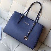 michael kors MK原版十字纹牛皮女士单肩包购物袋宝蓝
