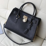 MK Michael Kors MK锁头包 黑色 十字纹牛皮真皮女包 单肩手提包