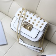 mk翻盖铆钉盖头包 白色 出货 原版牛皮链条单肩包