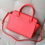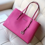 michael kors新款购物袋 MK原版十字纹牛皮女士购物袋单肩包玫红