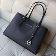 2014新款 michael kors MK原版十字纹牛皮女士单肩包购物袋黑色