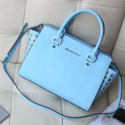 高档MK女包 michael kors 侧孔铆钉包鸡眼包 原版十字纹牛皮冰蓝