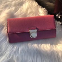 厂家直销 MK迈克高仕郁金香色十字纹牛皮长款锁头钱包手包20cm