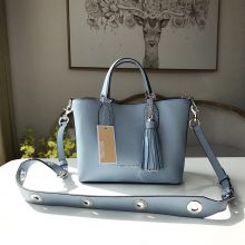 MK2018新款女包 MK浅蓝色纯原荔枝纹牛皮新款鸡眼变型包手提斜挎包包25CM