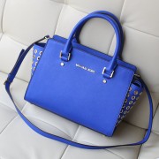 淘宝热销michael kors MK女包 原版十字纹牛皮双排钻蝙蝠包中号电光蓝