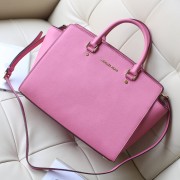 2014新款包包 michael kors mk玳瑁包原版十字纹牛皮粉色女包