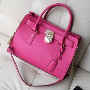 MK新款出货 锁头包 进口十字纹牛皮原版皮 玫红 女士手提斜挎包