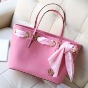 热销女包MK丝巾包 Michael Kors 粉色原版牛皮蝴蝶结真丝巾女士单肩手提包购物袋
