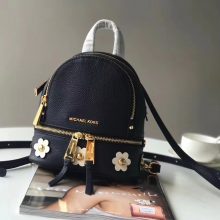 迈克科尔斯官网 MK18年最新款黑色牛皮花朵双肩包斜跨包书包19*22CM